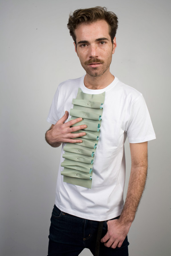 Collection of t-shirts created by nine designers incorporating leather elements from Andalusia, part of the project 'Symbiosis', with the aim to combine tradition and innovation in the leather industry.Designed by David Delfin, Roberto Diz, Antonio Garcia, Juana Martín, Vanesa Aller, Rafael Muñoz, Sebastien Gleize Solitas and Laura Domort from Ubrique.